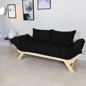 Acompanha: 1 base de madeira, 1 Futon e 2 almofadas.
