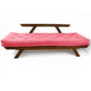 Material e estrutura: Futon de alta qualidade. Produzido com espuma ortopédica, algodão puro e fibra de silicone. Tecido em Sarja. A estrutura é produzida em madeira de pinus com pintura na cor imbuia.