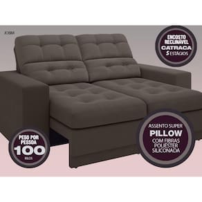 Sofá Jobim 1,70m Assento Retrátil e Reclinável Velosuede - NETSOFAS - Marrom Escuro