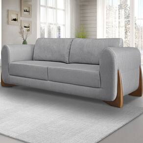 Sofa Jolie 3 Lugares 200cm Pes Boomerang Linho 213 Cinza Ezz