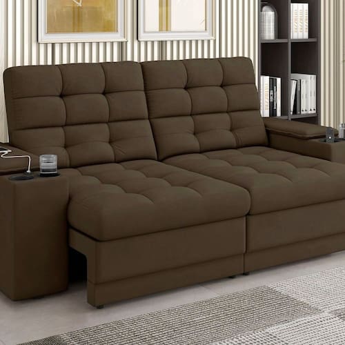 O Sofá Kansas Retrátil e Reclinável Suede possui garantia de 3 meses contra defeito de fabricação, a contar da data do recebimento da mercadoria. Produto Montado: Não Acompanha Almofadas extras: Não Almofada do assento: Não Possui Almofada do encosto: Fixa Altura do assento até o chão: 43.0000 Altura do Encosto: 68 cm Ambiente Principal: Sala de Estar codigo_ean: 7900288089229 Cor: Marrom Cor do Produto: Marrom Estilo de Braço: Braços Quadrados Itens Inclusos: 1 Sofá Manual de Montagem e Instalação: https://product-hub-prd.madeiramadeira.com.br/980071/documents/c8109c58-2bd5-4bf1-b9e0-cc2eddeebe1838191741182153980071149838.pdf Marca: Best House Material dos Pés: PVC Necessita Montagem: Não Origem do Produto: Nacional Peso: 67 kg Pet Friendly: Não Possui Percintas Elásticas: Sim Possui Pés: 04 Possui Rodízio: Não Profundidade Quando Estendido: 140 cm Profundidade quando extendido: 140.0000 Recomendações de Uso, Manutenção e Limpeza: Evite limpar com escovas ou produtos abrasivos Revestimento do Braço: Não se Aplica Suporta Até (kg): 120 kg Tecido Predominante: Suede Tipo de Encosto: Regulável Tipo de Mola: Molas Bonnel Tipo de Sofá: Sofá Comum