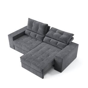 Seu design contemporâneo é realçado pelo revestimento em tecido suede, que traz um toque aveludado e sofisticado ao ambiente. Os assentos retráteis e encostos reclináveis proporcionam conforto ajustável, perfeito para qualquer momento do dia.