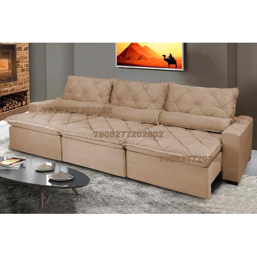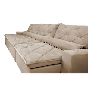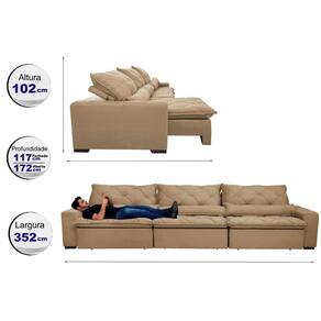 Sofá Lisboa 3,52m Retrátil, Reclinável com Molas no Assento e Almofadas Lombar Tecido Suede Castor - Palha