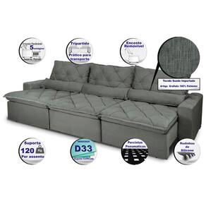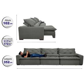 Sofá Lisboa 3,52m Retrátil, Reclinável com Molas no Assento e Almofadas Lombar Tecido Suede Grafite