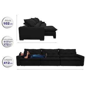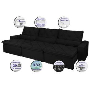 Sofá Lisboa 4,12m Retrátil, Reclinável, Molas no Assento e Almofadas Lombar Tecido Suede Preto - Preto