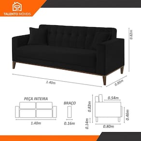 Sofa Liverpool 3 Lugares 195Cm Talento Móveis Preto