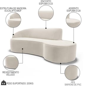 Com seu design curvo e configuração de braço do lado esquerdo, esse sofá não é apenas uma peça de mobília, mas uma obra de arte. Fabricado com atenção meticulosa aos detalhes e com acabamento nos mais altos padrões, ele exala elegância e sofisticação. Seja para uma reunião ou simplesmente para relaxar após um longo dia, esse sofá 2 lugares é ideal para criar uma atmosfera aconchegante e convidativa ao seu ambiente. Atualize o seu espaço com este sofá decorativo impressionante e transforme o seu espaço em um paraíso de estilo e conforto.
