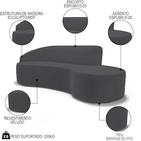 Conheça o Sofá Living 2 Lugares 180cm Braço Esquerdo Mozart D06 Veludo Cinza, da Mpozenato - uma obra-prima de design e conforto que elevará sua sala de estar a novos patamares.