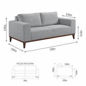 Uma excelente opção para quem busca um desing mais clean . O Sofá Capri se encaixa em vários ambientes e decoração se tornando uma peça versátil isso se deve a suas linhas retas e costuras limpas , o grande destaque fica para sua base total em madeira e suas almofadas soltas no encosto trazem o conforto que faltava nessa peça. Com esse conjunto de características esse sofá com certeza irá lhe surpreender. Acompanha Almofadas extras: Não Almofada do assento: Fixa Almofada do encosto: Removível Altura do assento até o chão: 43 cm Altura do Encosto: 80 cm Altura dos Pés: 14 cm Ambiente Principal: Sala de Estar Complexidade da Montagem: Baixa: pode ser montado por uma pessoa sozinha Cor: Cinza Cor do Produto: Cinza Densidade do Assento: D-26 Densidade do Encosto: Camadas de Densidades Diferentes Enchimento do Assento: Espuma Enchimento do Encosto: Fibra Siliconada Estilo de Braço: Braços Quadrados Firmeza do Assento: Médio Itens Inclusos: 1 Sofá e Kit Pés Material dos Pés: Madeira Necessita Montagem: Sim Origem do Produto: Nacional Peso: 39 kg Pet Friendly: Não Possui Percintas Elásticas: Sim Possui Pés: 04 Possui Rodízio: Não Recomendações de Uso, Manutenção e Limpeza: Para limpeza:aspire toda a superfície do estofado antes de limpar, para lavar ,utilize pano branco umedecido em água morna e sabão neutro na proporção de 19:1.Remova qualquer resíduo de sabão ao final da limpeza Revestimento do Braço: Estofado Sistema de Montagem: Pé um sistema de rosca , sem necessidade de ferramentas Suporta Até (kg): 200 kg Tecido Predominante: Algodão Tipo de Encosto: Regulável Tipo de Mola: Molas Bonnel