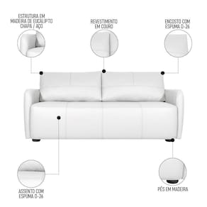 Renove a sua sala de estar com o Sofá Living 2 Lugares Sala de Estar 180cm Virtus L07 Couro Branco, da Mpozenato. Com seu design moderno e sofisticado, esse estofado agrega um toque de sofisticação para qualquer ambiente. Esse sofá, além de lindo, é também sinônimo de conforto e durabilidade, já que é tapeçado com espuma densidade 26 e revestido em couro, o que adiciona um charme extra, como também garante uma fácil manutenção. Enquanto isso, os pés de madeira discretamente aparentes completam a lista de atributos e são responsáveis pela estabilidade e resistência.