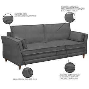 Com estrutura robusta e firme, fabricado com madeira maciça e tapeçaria com espuma de alta densidade, o Sofá Living 3 Lugares 180cm Pés Madeira Efraim F05 Veludo Grafite, da Mpozenato, é o estofado ideal para quem procura conforto aliado ao toque de sofisticação. Vem conferir!