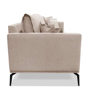 Espuma: Encosto almofadas soltas em fibra de silicone silicone, acompanha 2 almofadas soltas + 2 decorativas por braço; Assento Fixo c/ percintas elásticas italiana, espuma HR28 + plumante em silicone