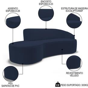 Altura: 82 cm | AssemblyRequired: Sim, sugerimos a contratação do nosso serviço de montagem (para os CEPs em que o serviço está dispon | Color: Azul | ColorFamily: Azul | ColorSimple: Azul | ColorSupplier: Azul | Cor: Azul | Gênero: Unisex | Largura: 210 cm | Manual: Sim | Marca: Mpozenato | Material: Madeira de Eucalipto | MaterialFamily: Madeira de Eucalipto | Model: Mozart | Origem: Nacional | OriginCountry: Nacional | OriginState: PR | Peso: 78 kg | Peso Suportado: 300 kg | ProductContents: 1 Sofá | ProductHeight: 82 | ProductInstructions: Produto para uso em ambiente interno, nao devendo ficar exposto ao sol, calor e umidade excessivos. | ProductLength: 100 | ProductWarranty: 90 dias após o recebimento do produto | ProductWeight: 78 | ProductWidth: 210 | Profundidade: 100 cm | Requere montagem: Sim | SizeDescription: 82 x 210 x 100 cm | SupplierSimpleName: Sofá Living 3 Lugares 210cm Braço Direito Mozart D06 Veludo Azul - Mpozenato | Tipo de : Fabricante