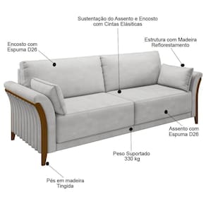 Altura: 88 cm | AssemblyRequired: Sim, sugerimos a contratação do nosso serviço de montagem (para os CEPs em que o serviço está dispon | Color: Cinza | ColorFamily: Cinza | ColorSimple: Cinza | ColorSupplier: Cinza | Cor: Cinza | Gênero: Unisex | Largura: 222 cm | Manual: Sim | Marca: Mpozenato | Material: Madeira de Reflorestamento | MaterialFamily: Madeira de Reflorestamento | Model: Roya | Origem: | OriginCountry: | OriginState: PR | Peso: 71 kg | Peso Suportado: 330 Kg | ProductContents: 1 Sofá | ProductHeight: 88 | ProductInstructions: Produto para uso em ambiente interno, nao devendo ficar exposto ao sol, calor e umidade excessivos. | ProductLength: 88 | ProductWarranty: 90 dias após o do produto | ProductWeight: 71 | ProductWidth: 222 | Profundidade: 88 cm | Requere montagem: Sim | SizeDescription: 88 x 222 x 88 cm | SupplierSimpleName: Sofá Living 3 Lugares 222cm Pés Madeira Roya M22 Veludo Cinza - Mpozenato | Tipo de : Fabricante
