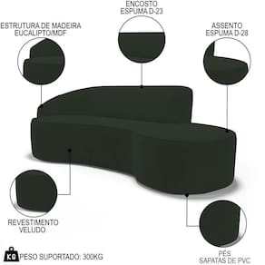 Conheça o Sofá Living 3 Lugares 230cm Braço Esquerdo Mozart D06 Veludo Verde, da Mpozenato - uma obra-prima de design e conforto que elevará sua sala de estar a novos patamares.