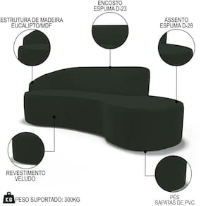 Conheça o Sofá Living 3 Lugares 230cm Braço Esquerdo Mozart D06 Veludo Verde, da Mpozenato - uma obra-prima de design e conforto que elevará sua sala de estar a patamares.