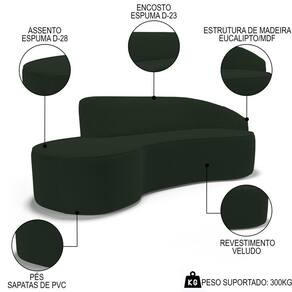 Conheça o Sofá Living 3 Lugares 260cm Braço Direito Mozart D06 Veludo Verde, da Mpozenato - uma obra-prima de design e conforto que elevará sua sala de estar a patamares.
