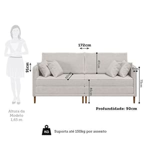 O Sofá Manágua combina sofisticação e funcionalidade, perfeito para transformar sua sala de estar. Com estrutura em madeira maciça e pés em formato trapézio, oferece estabilidade e elegância. As almofadas do encosto podem ser movidas, garantindo conforto e praticidade, enquanto detalhes em sintético nas almofadas decorativas e braços agregam charme e modernidade. O assento é reforçado com mola espiral e percintas elásticas, proporcionando maior durabilidade e conforto prolongado. Ideal para quem busca qualidade, design clássico e um toque de aconchego em casa. Produto Montado: Sim Acompanha Almofadas extras: 04 Almofada do assento: Removível Almofada do encosto: Removível Altura do assento até o chão: 46.0000 Altura do Braço: 73 cm Altura do Encosto: 47 cm Altura dos Pés: 12 cm Altura Máxima dos Pés: 12.0000 Ambiente Principal: Sala de Estar codigo_ean: 7900288217219 Complexidade da Montagem: Baixa: pode ser montado por uma pessoa sozinha Cor: Veludo Jacquard Off White Cor do Produto: Veludo Jacquard Off White Enchimento do Encosto: Espuma Informações Complementares: Percintas elásticas no assento e encosto. Assento com molas espirais, estofado com espuma D-28, braços D-23 cobertos por Manta Acrílica e almofadas em Fibra Siliconada. Itens Inclusos: 1 Sofá, 4 Almofadas, Kit Ferragens e Manual de Montagem Largura do Braço: 6 cm Linha ou Coleção: Manágua Manual de Montagem e Instalação: https://product-hub-prd.madeiramadeira.com.br/511871012/documents/a1d22eef-df4a-4b5e-812d-ad94dcc9eae53145641623317555599506228.pdf Marca: Espresso Móveis Material dos Pés: Madeira Maciça Necessita Montagem: Sim Origem do Produto: Nacional Peso: 28 kg Pet Friendly: Não Possui Mola: Sim Possui Percintas Elásticas: Sim Possui Pés: 08 Possui Rodízio: Não Recomendações de Uso, Manutenção e Limpeza: Para limpeza utilizar somente pano limpo e macio, ligeiramente umedecido em água (apenas o bastante para remover a poeira), seguido de um pano seco. Revestimento do Braço: Veludo Sistema de Montagem: Arruelas plásticas. Suporta Até (kg): 150 kg Tecido Predominante: Veludo Tipo de Encosto: Fixo Tipo de Mola: Molas Espirais Tipo de Sofá: Sofá Comum