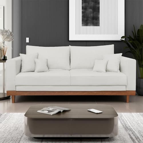 Você receberá 1 volume, ou seja, apenas um Sofá Living 3 Lugares Linho Resistente Madeira + Almofadas