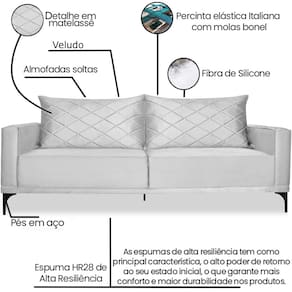 Modelo: Sofa Living 3 Lugares Nori 200cm Veludo Deluxe