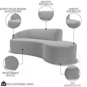 Conheça o Sofá Living 4 Lugares 280cm Braço Esquerdo Mozart D06 Bouclê Cinza, da Mpozenato - uma obra-prima de design e conforto que elevará sua sala de estar a patamares.