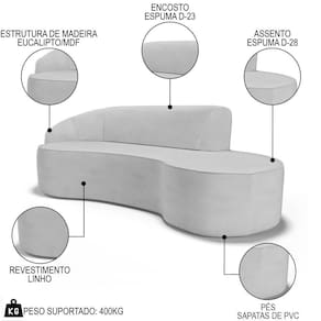 Conheça o Sofá Living 4 Lugares 300cm Braço Esquerdo Mozart D06 Linho Cinza, da Mpozenato - uma obra-prima de design e conforto que elevará sua sala de estar a patamares.
