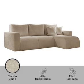 Sofá Living 90cm + 90cm Com Chaise Direito Meu Sofá Online A226 Linho Bege