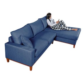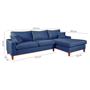 Sofa Living California 4 Lugares Chaise Lado Esquerdo Revestido Linho Base Madeira - Azul