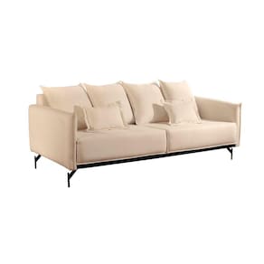 Seus pés são de ferro , incluindo os pés centrais. Acompanha Almofadas extras: 02 Almofada do assento: Fixa Almofada do encosto: Removível Altura do assento até o chão: 42 Altura do Encosto: 43 Altura dos Pés: 17 Ambiente Principal: Sala de Estar Complexidade da Montagem: Baixa: pode ser montado por uma pessoa sozinha Cor: Bege/Preto Cor do Produto: Bege/Preto Densidade do Assento: D-33 Densidade do Encosto: D-18 Enchimento do Assento: Espuma Enchimento do Encosto: Fibra Siliconada Estilo de Braço: Braços Redondos Firmeza do Assento: Médio Itens Inclusos: 1 Sofá Material dos Pés: Ferro Montagem Flex: Não Necessita Montagem: Não Origem do Produto: Nacional Peso: 50 Pet Friendly: Não Possui Percintas Elásticas: Sim Possui Pés: 06 Possui Rodízio: Não Recomendações de Uso, Manutenção e Limpeza: Não utilizar produtos químicos. Não utilizar produtos abrasivos. Não molhar. Utilizar pano macio e seco ou levemente umedecido. Resistente à Chuva: Não Sistema de Montagem: Parafusos Suporta Até (kg): 120 Tecido Predominante: Linho Tipo de Encosto: Fixo Tipo de Mola: Molas Bonnel Marca: Ecosono Ean: 7909903407356