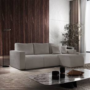 Sofá Living de 90cm com Braço + 90cm sem Braço mais Chaise Lado Direito Meu Sofá Online - Off White