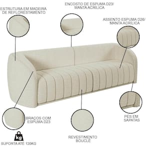 Para ter uma sala de estar moderna e completa o segredo é investir em um sofá confortável e, ao mesmo tempo, que expresse em seu design um toque de elegância ao ambiente. O Sofá Living Decorativo 3 Lugares 252cm Meris M22 Boucle Cru, da Mpozenato, revela esse conceito e vai fazer a diferença na sua sala.
