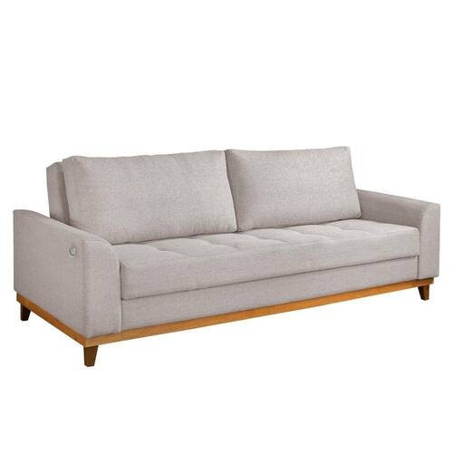 Sofá Living E Reclinável Jasmin Linho Com Pés De Madeira Usb Com Kit Usb Cor Bege 2154 - Blush