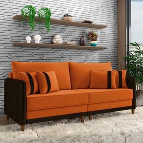 Sofá Living Montecarlo 3 Lugares Bipartido 252cm Pés Em Madeira Veludo/pu Terracota/marrom G33 - Gran Belo