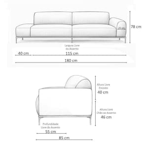 Outras Medidas:Altura do Encosto: 40 cmAltura do Assento ao Chão: 46 cmAltura do Braço: 20 cmAltura dos Pés: 18 cmLargura do Assento: 115 cmProfundidade Livre do Assento: 55 cmLargura do Braço: 25 cm