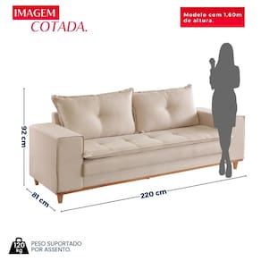 Sofá Living Verona 3 Lugares 2,00m Bege- Tudo de Móveis