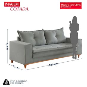 Conta com 5 pés de apoio que garantem estabilidade, encosto fixo que proporciona ótimo suporte para as costas, e almofadas de assento removíveis, facilitando a limpeza e manutenção. Com generosos 2 metros de largura, acomoda confortavelmente até 3 pessoas.