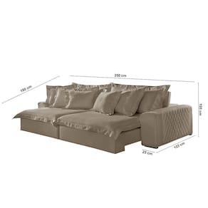 Braço: Espuma D28, tecido com matelassê. Incluso: almofadas decorativas.