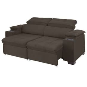 Sofá Retrátil e Reclinável Manaus. Com uma estrutura interna resistente, ele possui a estabilidade necessária para esse tipo de móvel, tendo o enchimento das almofadas em fibra siliconada, percintas elásticas italianas e molas bonnel, dão o suporte necessário para o conforto, sendo perfeito para acomodar você e as pessoas que ama naquela maratona de séries, ou até mesmo para descansarem aos finais de semana. Dê um up no visual da sua casa. Demais, né? Garanta já o seu! Produto Montado: Não Acompanha Almofadas extras: Não Almofada do assento: Fixa Almofada do encosto: Fixa Altura do assento até o chão: 45.0000 Altura do Encosto: 105 cm Altura dos Pés: 6 cm Altura Máxima dos Pés: 6.0000 Ambiente Principal: Sala de Estar Bipartida: Sim codigo_ean: 7900288111340 Cor: Chocolate Cor do Produto: Chocolate Densidade do Assento: D-26 Enchimento do Assento: Espuma Enchimento do Encosto: Fibra Siliconada Estilo de Braço: Braços Quadrados Firmeza do Assento: Macio Gramatura do Tecido: 200 g/m² Itens Inclusos: 1 Sofá Largura do Braço: 25 cm Linha ou Coleção: Não Marca: Ares Estofados Material da Corrediça do Sofá: Aço/Metal Material dos Pés: PVC Montagem Flex: Não aplica Necessita Montagem: Não Nível de Conforto: Macio Origem do Produto: Nacional Peso: 52 kg Peso Suportado por m²: 100 kg/m² Pet Friendly: Não Porta Copos: Sim Possui Baú: Não Possui Entrada USB: Não Possui Mola: Sim Possui Percintas Elásticas: Sim Possui Pés: 04 Possui Rodízio: Sim Profundidade Quando Estendido: 145 cm Quantidade de Estágios do Encosto: 5 Quantidade de Itens: 4 Quantidade de Molas por Assento: 2 Recomendações de Uso, Manutenção e Limpeza: Fazer a limpeza com aspirador de pó em baixa rotação ou escova com cerdas macias para a eliminação de poeira e pano úmido em água. Revestimento do Braço: Tecido Rodízio com Trava: Não Suporta Até (kg): 360 kg Tecido Predominante: Veludo Tipo de Encosto: Regulável Tipo de Mola: Molas Bonnel Tipo de Sofá: Sofá Comum Marca: Ares Estofados