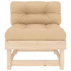 - Sofá central: - - Material: madeira de pinho maciça (não tratada) - - Material de ripas: madeira compensada- - Dimensões: 24" x 23,8" x 24,4" (C x L x A) - - Capacidade máxima de carga: 242,5 libras- - Almofada: - - Cor: bege- - Material da capa: tecido Oxford- - Material de enchimento: algodão PP- - Dimensões da almofada de assento: 23,6" x 23,6” “x 4,7" (C x L x T) - - Dimensões da almofada traseira: 23,6" x 12,6" x 4,7" (C x L x T) - - Montagem necessária: Sim- - A entrega contém: - - 1 x sofá médio- - 1 x almofada de assento- - 1 x almofada traseira- - - Proposta 65 da Califórnia