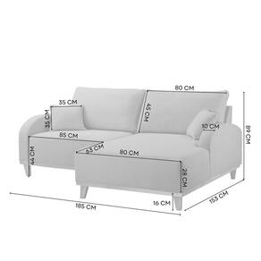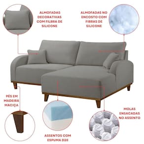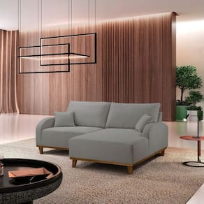 Sofá Mercúrio 2 Lugares com Chaise Lado Direito 185cm em Linho Cinza