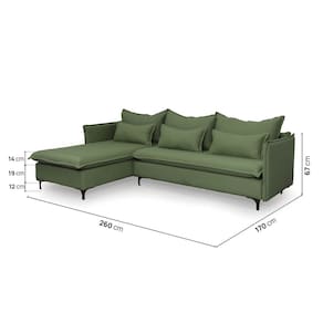 Amplie a história do seu sofá com kits de capas avulsas. Uma forma carinhosa e sustentável de renovar, manter seu estilo sempre em dia e fortalecer a conexão com seu lar, prolongando a vida do que você ama. Produto Montado: Sim Acompanha Almofadas extras: 03 Almofada do assento: Removível Almofada do encosto: Removível Altura do assento até o chão: 45.0000 Altura do Encosto: 55 cm Altura dos Pés: 12 Altura Máxima dos Pés: 12.0000 Ambiente Principal: Sala de Estar codigo_ean: 7900288246660 Complexidade da Montagem: Baixa: pode ser montado por uma pessoa sozinha Cor: Verde Cor do Produto: Verde Densidade do Assento: D-26 Densidade do Encosto: D-18 Enchimento do Assento: Espuma Enchimento do Encosto: Fibra Siliconada Firmeza do Assento: Médio Itens Inclusos: Módulos, Capa e Manual de Montagem Linha ou Coleção: Sôma Manual de Montagem e Instalação: https://product-hub-prd.madeiramadeira.com.br/924617014/documents/3a773772-c0e5-4052-884e-fa51f37bc9a43255673476017594141243621.pdf Marca: CabeCasa MadeiraMadeira Material dos Pés: Metal Necessita Montagem: Sim Origem do Produto: Nacional Peso: 85.7900 Pet Friendly: Não Possui Percintas Elásticas: Sim Possui Pés: 10 Possui Rodízio: Não Recomendações de Uso, Manutenção e Limpeza: Para a limpeza diária do seu sofá, utilize o aspirador para manter o sofá impecável, para manchas, água e sabão neutro. Em caso de serviço contratado para a limpeza, recomendamos profissional para limpeza mais intensa. Sistema de Montagem: Parafusos Suporta Até (kg): 160 kg Tecido Predominante: Linho Tipo de Encosto: Fixo Tipo de Mola: Molas Bonnel Tipo de Sofá: Sofá com Chaise