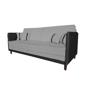 Sofá Modular 3 Lugares Filipi 2,12m Linho Cinza - Corino Preto