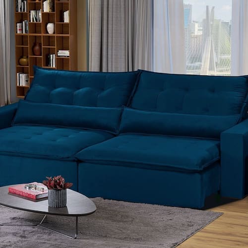 Pode haver alguma diferença de tonalidade entre imagem e o produto, por conta do tratamento de imagens e a calibração de cores da sua tela. Produto Montado: Não Acompanha Almofadas extras: 02 Almofada do assento: Fixa Almofada do encosto: Fixa Altura do assento até o chão: 47.0000 Altura do Encosto: 112 cm Ambiente Principal: Sala de Estar codigo_ean: 7900288091499 Cor: Azul Cor do Produto: Azul Enchimento do Encosto: Espuma Estilo de Braço: Braços Quadrados Itens Inclusos: 1 Sofá Marca: Yescasa Material dos Pés: Madeira Necessita Montagem: Não Peso: 80 kg Pet Friendly: Não Possui Percintas Elásticas: Sim Possui Pés: 04 Possui Rodízio: Sim Profundidade Quando Estendido: 175 cm Profundidade quando extendido: 175.0000 Recomendações de Uso, Manutenção e Limpeza: Limpar um sofá com pano umedecido é uma maneira simples e eficaz de manter o móvel em bom estado. Revestimento do Braço: Espuma Rodízio com Trava: Sim Suporta Até (kg): 200 kg Tecido Predominante: Veludo Tipo de Encosto: Regulável Tipo de Mola: Molas Bonnel Tipo de Sofá: Chaise