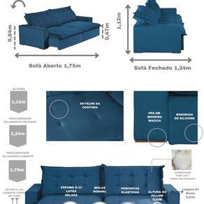 Chegou o maravilhoso Sofá Bahia e o que o torna especial é o design com detalhes nas costuras seu assento em pillow top 0,20m de altura que o embelezam e dão um conforto extra. Sua Sala jamais será como antes. O encosto de cabeça reclinável contem 3 posições, Assentos retrateis com espuma D-33 e molas Bonnel, percintas Italiana.
