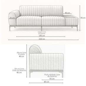 MedidasAltura Total: 78 cmLargura Total (com mesa estofada): 210 cmProfundidade Total: 85 cmPeso: 80 kgAltura do Encosto: 40 cmAltura do Assento ao Chão: 46 cmAltura do Braço: 20 cmAltura dos Pés: 18 cmLargura Livre do Assento: 145 cmProfundidade Livre do Assento: 55 cmLargura do Braço: 25 cmLargura da Mesa Estofada: 40 cmProfundidade da Mesa Estofada: 90 cm