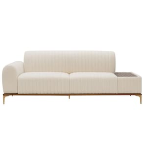Sofá Molino 3 Lugares 210cm C/mesa Auxiliar Esquerdo Pés Ouro.f Bouclé Off White - Nexta Casa