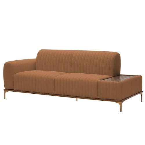 DiferenciaisMesa estofada integrada praticidade para apoiar objetos com estiloDesign moderno com acabamento em gomos sofisticação únicaAssento bipartido maior conforto e estética