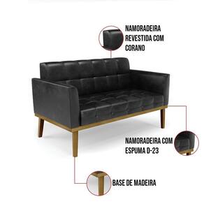Você gosta de colecionar vários momentos memoráveis com sua família e amigos? Que tal recebê-los, com móveis de altíssima qualidade que só a D'Rossi tem? O Sofá Namoradeira Elisa é adequado para você! Seu design retrô é a grande tendência do momento. Pode ser utilizado em diversos espaços da casa, em salas, hall de entrada, quartos, cozinhas, varanda, sacada, escritório, dentre outros. Contém as seguintes características: A estrutura é feita de madeira de Eucalipto 100% de reflorestamento, e a Base de Madeira Castanho, além de ser resistente e durável, suporta em média até 120 kg. Assento, encosto e braços, contém enchimento de espuma D-23 e é estofada em tecido Corano, que oferece muito conforto e resistência ao sentar, com aquela sensação de maciez e aconchego. Possui também, detalhes de costura no encosto e assento, resultando em um acabamento impecável, conferindo muito mais valor e elegância ao seu espaço. Para complementar a decoração com esse lindo Sofá Namoradeira, a dica é utilizar mantas, almofadas ou vasinho de flor. E pronto, seu cantinho estará perfeito para descansar e relaxar! Aqui, você encontra várias opções, para que seus amigos e familiares se sintam acolhidos. Garanta já seu Sofá Namoradeira.