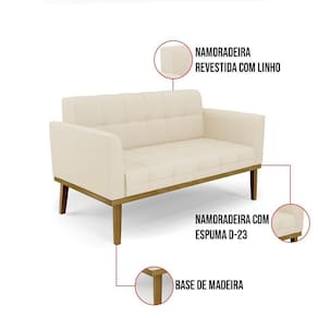 Você gosta de colecionar vários momentos memoráveis com sua família e amigos? Que tal recebê-los, com móveis de altíssima qualidade que só a D'Rossi tem? O Sofá Namoradeira Elisa é adequado para você! Seu design retrô é a grande tendência do momento. Pode ser utilizado em diversos espaços da casa, em salas, hall de entrada, quartos, cozinhas, varanda, sacada, escritório, dentre outros. Contém as seguintes características: A estrutura é feita de madeira de Eucalipto 100% de reflorestamento, e a Base de Madeira Castanho, além de ser resistente e durável, suporta em média até 120 kg. Assento, encosto e braços, contém enchimento de espuma D-23 e é estofada em tecido Linho, no tom Bege, que oferece muito conforto e resistência ao sentar, com aquela sensação de maciez e aconchego. Possui também, detalhes de costura no encosto e assento, resultando em um acabamento impecável, conferindo muito mais valor e elegância ao seu espaço. Para complementar a decoração com esse lindo Sofá Namoradeira, a dica é utilizar mantas, almofadas ou vasinho de flor. E pronto, seu cantinho estará perfeito para descansar e relaxar! Aqui, você encontra várias opções, para que seus amigos e familiares se sintam acolhidos. Garanta já seu Sofá Namoradeira.