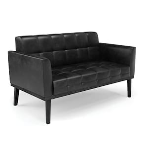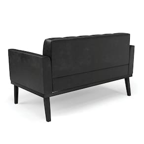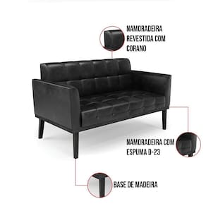 Sofá Namoradeira 2 Lugares Base De Madeira Preto Elisa Corano D03 - D'rossi Cor Preto